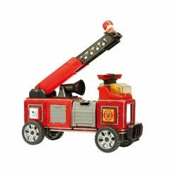 This 50 piece set comes with 24 magnetic pieces and 26 accessories. 8 triangles. 14 square, 1 rectangle, 1 super rectangle. 2 characters, 2 window roof, 1 driver seat, 1 door, 1 barricade, 1 propeller siren, 1 megaphone, 2 wheels, 1 ladder crane, 1 container grab, 2 plate, 2 mini wall plate, 1 mini car, 1 mini stair, 6 mini block image, 1 ladder. Great for children aged 3 and up.