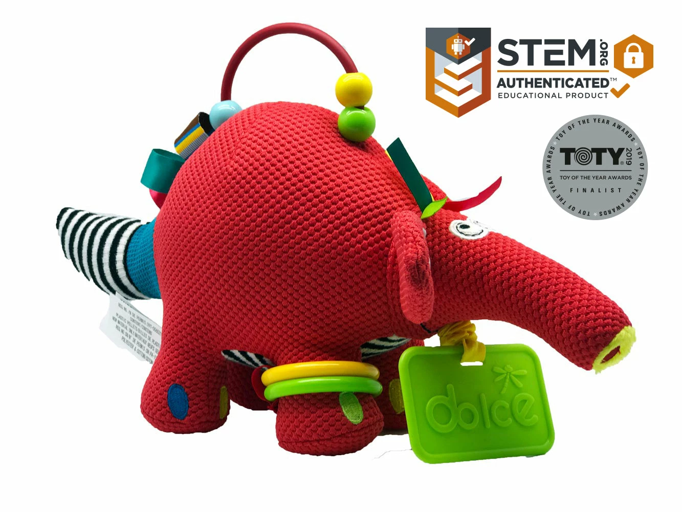 Dolce stands for Develop, Observe, Learn, Create, Educate. Let your baby DEVELOP their sensory skills with the wide variety of high quality textured fabrics. Your little one will love to OBSERVE the fun colorful fabrics and LEARN to understand cause and effect through the many interesting activities in our toys. CREATE fun, learning and roleplay with your favorite Dolce friend. Let the beautiful, interesting and activity rich Dolce toys EDUCATE through play.