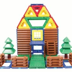 Build with original and authentic Magformers and decorate your log cabins by clipping in balconies and walls. Add windows, ladders, lay turf and build fences and plant trees.