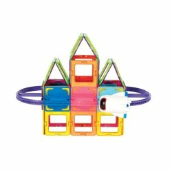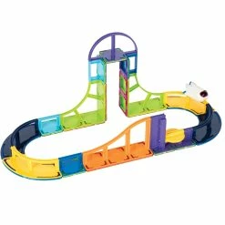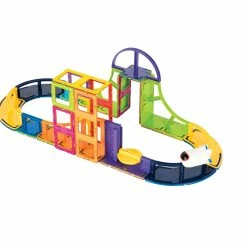 Enjoy racing adventures with the all new Magformers 44-piece Sky Track Play Set! With a sky shuttle and multiple track accessories, you can create loops, ups and downs, and twists and turns for endless flight fun! Click the track into Magformers Magnetic shapes that are included.