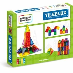 Become the ultimate builder with the Tileblox 104Pc Set! Create multiple magnetic builds with 104 different pieces! Design huge houses, rocket ships and animals. With six different shapes, this is a great set for the master builder!