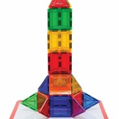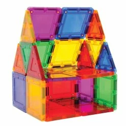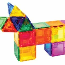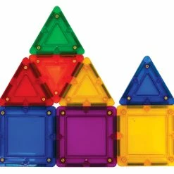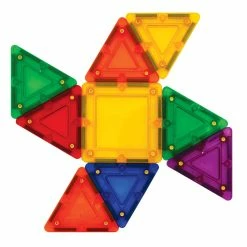 Create your own designs with the Rainbow 30Pc Set. With squares and triangles in all six different colors, let your creativity run wild and create confidently. Build on the included magnetic board with 12 Rainbow Triangles and 18 Squares and take your creations with you as you travel. Follow along with the idea sheet and let your imagination run wild!