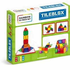 Each geometric shape contains magnets that let you build with endless possibilities! Tileblox is perfect for STEM education and when playtime is over, use the magnetic power to simply stack and store. Ages 3+
