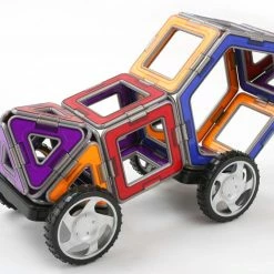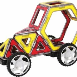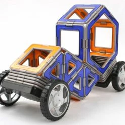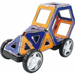Create super fast cars with our lightweight XL pieces! Arriving in red and yellow or blue and orange each with unique grey edges. Use 12 triangles, 16 squares and 2 hexagons and 2 wheels to build cars and roadsters! Let your imagination run wild!Build along with the step-by-step instructions and develop color and shape recognition, fine motor skills and problem-solving ability.Each geometric shape contains magnets that never reject, so you’ll always hear the Magformers click. When playtime is over, use the magnetic power to simply stack and store.Magformers XL Cruiser 32Pc has been proudly selected as a top STEM toy and teaching aid by STEM.org. The STEM.org Authenticated trustmark streamlines consumer’s ability to identify resources that conform to vetted STEM standards, thus assisting with quick decision-making in favor of quality. When parents and educators observe STEM.org Educational Research’s seal, they know that products will: Integrate seamlessly into STEM-friendly classrooms and homes, Align to Science, Technology, Engineering, and/or Math standards, Support the development of learner’s 21st Century Skills, Engage users through hands-on learning and collaboration, Ensure a secure, third-party review and evaluation process.STEM.org Educational Research takes into consideration the following criteria when assessing each item: STEM Subjects, 21st Century Skills, Sensory Stimulation, Diversity & Inclusion, Communication & Socialization, Kinesthetics & Active Play, Growth Accommodation, Support MaterialsMagformers’ items excelled during our evaluation process, scoring in the top 87.5 percentile of over 1,100 STEM products reviewed since 2014.