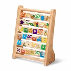 This timeless toy, featuring 36 colorful double-sided tiles, is an early-learning essential! The wooden frame includes all the letters of the alphabet as well as the numbers 1 through 10 on one side and whimsical illustrations including an apple, fish, key, moon, grapes, tie, and house on the other. The spinning tiles encourage children to play, explore, and learn. A tremendous value that will last for years!
