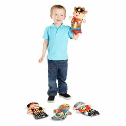 • Four soft hand-puppets in a “bold buddies” theme: knight, pirate, sheriff, and superhero