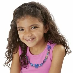 • Design jewelry with a butterfly-themed wooden bead set.