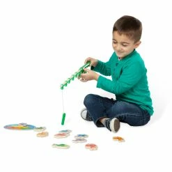 Catch some laughs and learning with this wooden magnetic play set–complete with working wind-up reel! The 10 magnetic fish are numbered and patterned to enrich matching, sorting, and counting activities, and two wooden rods make collecting them a blast! Kids can use the spinner to play as a game, or just have fun collecting the pieces over and over again. Either way, there’s plenty of fun in this sea!