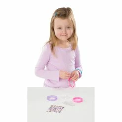 Kids can design, make, and wear their own fabulous bracelet styles with this all-inclusive craft kit! Shimmering gel stickers, sparkling glitter stickers, and stick-on pearls make it easy to customize the four bangle-style bracelets with a gorgeous array of shapes and designs. Kids can layer on the stickers or create one-of-a-kind patterns—whatever the design, the results always look fabulous!