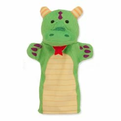 This four-piece hand-puppet set includes a royal collection of characters! Designed to help children and caregivers role-play together in a sweet and simple way, the prince, princess, knight, and dragon are sure to inspire countless creative stories and amazing imaginary adventures. The simple glove puppets fit children and adults and are easy to use, so even the littlest puppeteers can see exciting movement with very little skill—terrific for self-confidence, and also an invaluable booster for motor skills, hand-eye coordination, communication skills, parent-child bonding, and so much more! Made with brightly patterned, washable fabrics and built to last, these soft and sweet hand puppets are sure to be go-to toys for years to come.