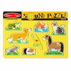 Eight favorite pets are waiting to “speak” to your child! Place a puzzle piece into the puzzle board well with the matching picture, and hear the animal meow, woof or tweet! This eye- and ear-catching puzzle enhances matching and listening skills.