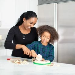 • Six sliceable wooden pizza slices and more than 50 toppings for pretend play fun