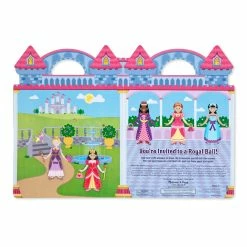These reusable puffy stickers are filled with royal charm–and accented with glittering details! Layer them onto the double-sided background board to fill four royal settings with glamorous princesses, outfitted in mix-and-match ball gowns, jewelry, scepters, shoes, and crowns. There’s even a princely poodle to keep them company! A built-in sticker collection–67 stickers in all–offers endless opportunities for kids to express their creativity and have lots of pretend dress-up fun. Simply peel up the reusable stickers to change the palace scenes, restyle the princesses, and tell a royal story from your own imagination! The sturdy background board folds to neatly store it all away, and a diecut handle makes this kids’ sticker activity set great for travel to neighboring kingdoms.