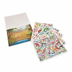 Fill the reusable scenes with more than 185 cling-style stickers, and create your own dinosaur-filled prehistoric adventures! To set the scene and spur the imagination, five glossy, full-color backgrounds (prehistoric ocean, Triassic, Jurassic, Cretaceous, and Ice Age) feature lots of space to play creatively. They pull out cleanly too–so this cool set is easy to share. The colorful, kid-friendly stickers (for ages three and older), are organized by time period, stick easily, pull up cleanly, and can be used again and again to keep bringing prehistoric stories to life.