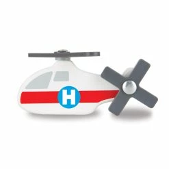 • Includes 4 colorful wooden rescue vehicles: ambulance, fire truck, helicopter, and police car