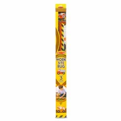 Get to work all around the construction zone with this sturdy, colorful construction site rug! Durably made to look great for countless playtimes to come, the woven rug with a skid-proof backing comes with three wooden construction vehicles and features details like a crane, wheelbarrows, barriers, cones, and roads to accommodate all kinds of vehicles, play people, and more! With this rug, there are lots of ways to learn and play.