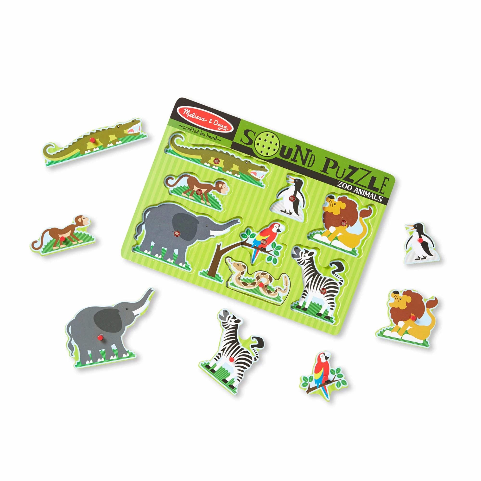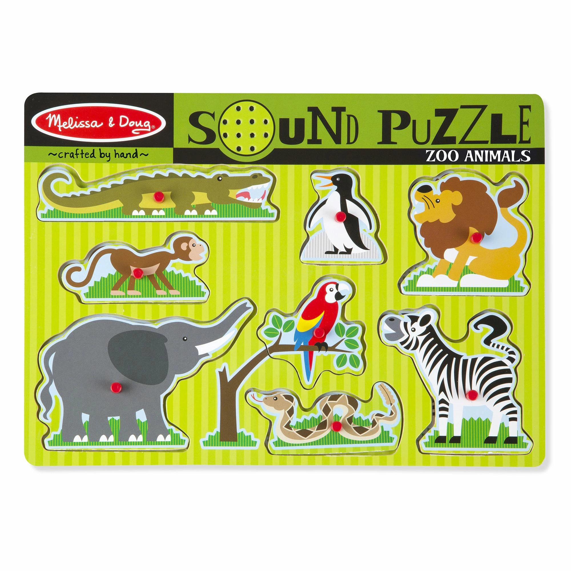 Listen to the voices of eight favorite zoo animals when the puzzle pieces are correctly placed in the puzzle board! Each animal piece has a matching full-color picture beneath. Eye- and ear-catching puzzle enhances matching and listening skills.