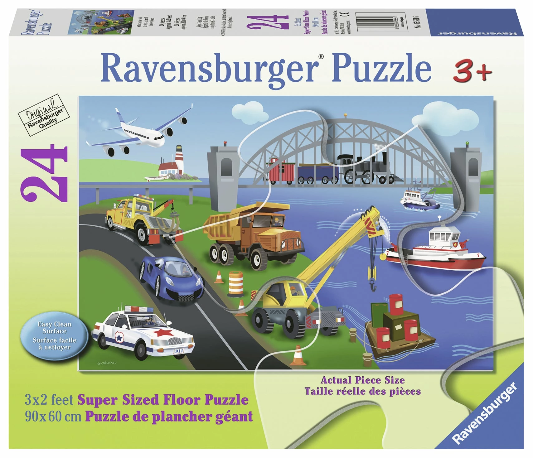 • 24 piece Ravensburger giant floor jigsaw puzzles for kids are crafted with premium quality, in terms of both content and material, and have a completed size of 36″ x 24″.