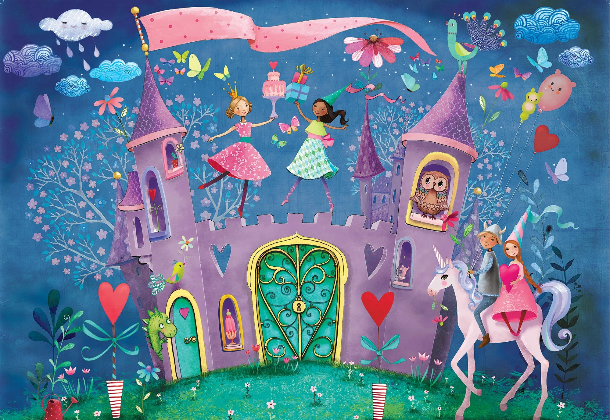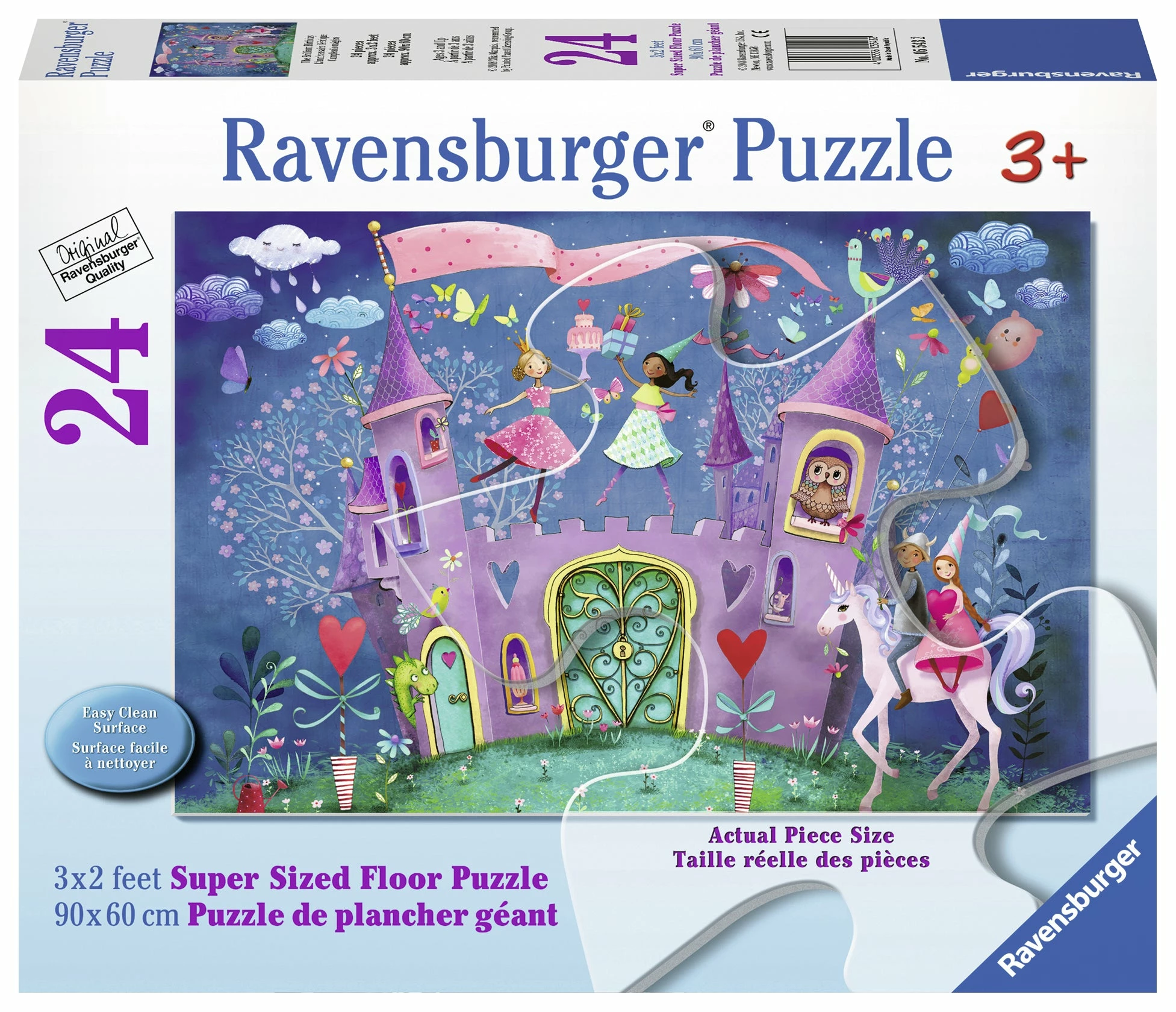 Your little one will love piecing together this 24 piece giant floor puzzle with easy-to-hold pieces, featuring a fantastical birthday complete with a castle, unicorn, decorations, and more.