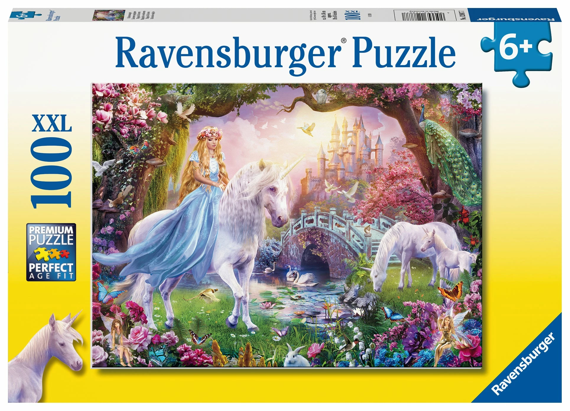 Assemble 100 pieces to reveal a fantastic magical scene featuring princesses and unicorns!